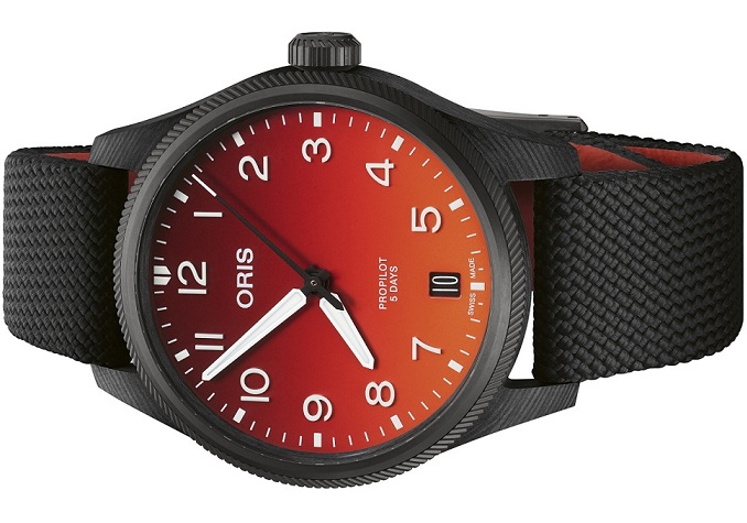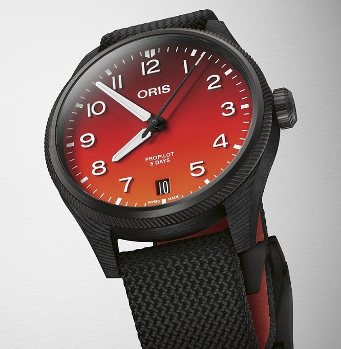 La Colson Limited Edition cattura anche l’attenzione con un quadrante bicolore a gradazione intensa con i colori rosso e arancione. Si dice che Colson Airlines abbia tratto ispirazione dal design dalle fiamme ardenti che affronta sempre sulla scena di un incendio.