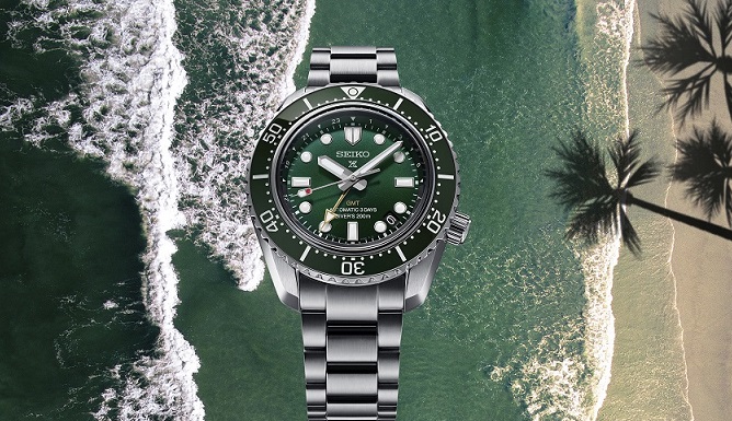 Le lancette GMT color oro vengono aggiunte al quadrante nero opaco o verde. Le graduazioni di 24 ore sono stampate sulla flangia bombata del quadrante esterno, in modo da poter contare intuitivamente l’ora del giorno e della notte del secondo fuso orario allo stesso tempo. Gli indici e le lancette lucidi a forma di punto o barra sono fittamente riempiti con l’esclusiva vernice luminosa speciale del Gruppo Seiko, Lumibrite, per garantire un’eccellente leggibilità anche in condizioni di immersione reale.