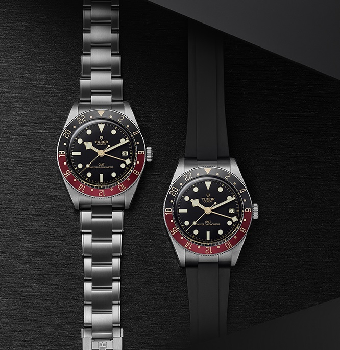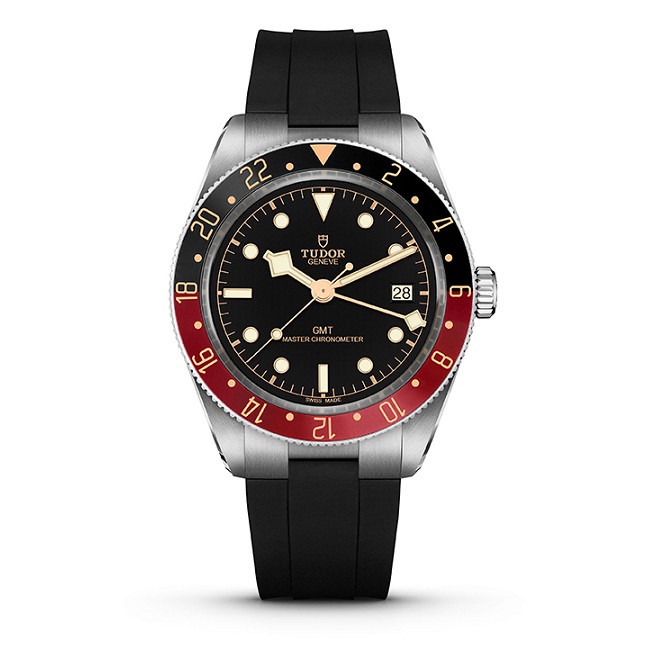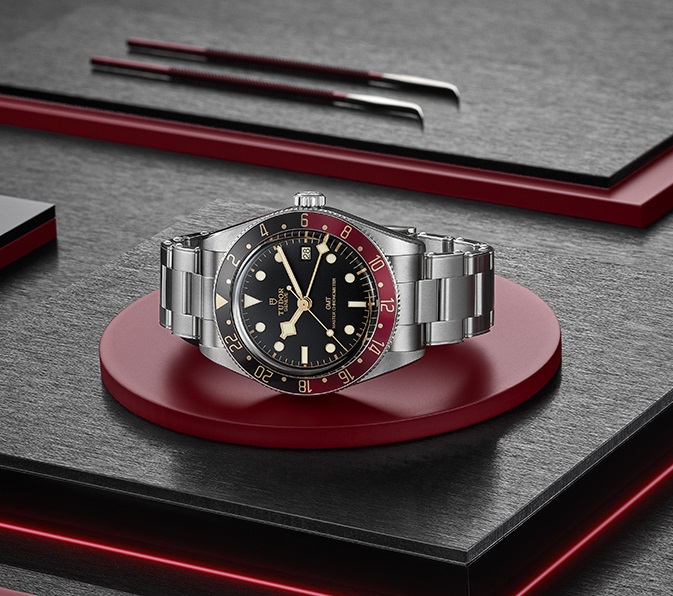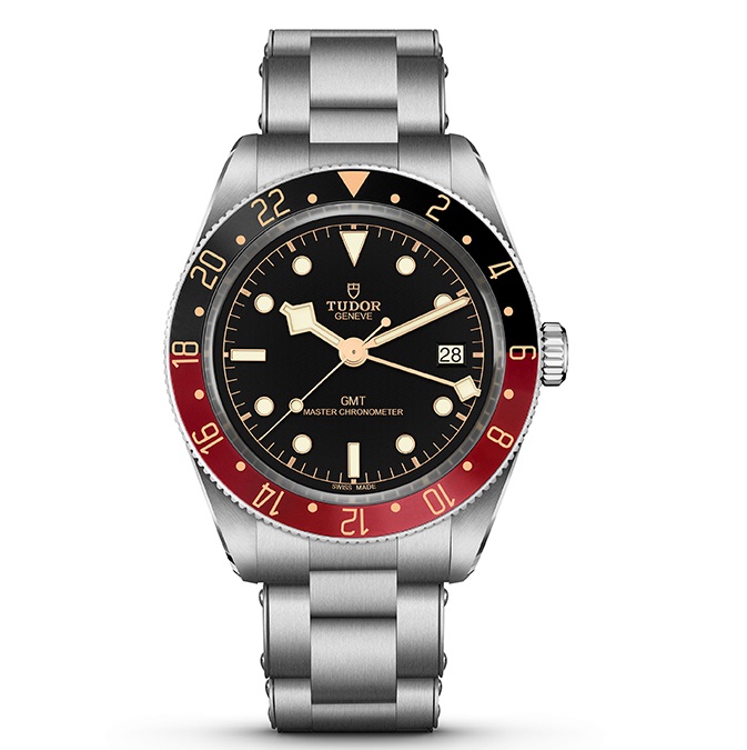 Le lancette a fiocco di neve, divenute un simbolo degli orologi subacquei Tudor fin dalla loro introduzione nel 1969, e la lancetta GMT, che indica la seconda ora, sono rivestite di Superluminova. Gli indici applicati color oro si intrecciano con il quadrante nero e la lunetta bicolore, creando un tocco retrò. La finestra della data alle ore 3 e la minuteria all’esterno sono state trattate come standard. A differenza del Black Bay GMT, la scritta “Master Chronometer” è scritta a ore 6.